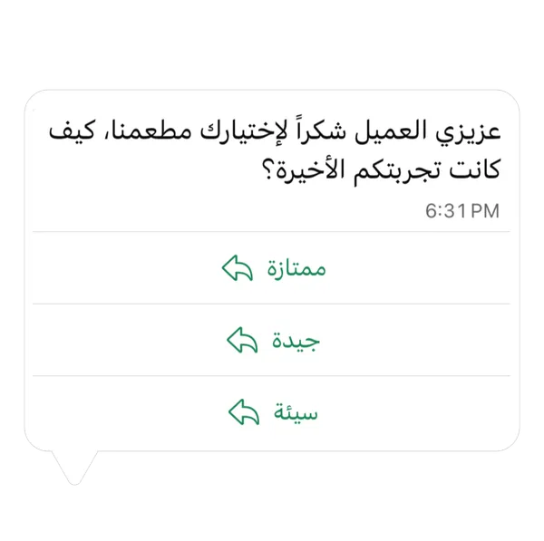 تواصل ذكي عبر واتساب لخلق تجربة أفضل وجمع رأي العميل عبر تخصيص رسالة مخصصة