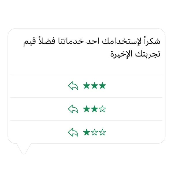 يتم إشعارك مباشرة عند وصول تقييم غير راضٍ لتتخذ الإجراء بسرعة.